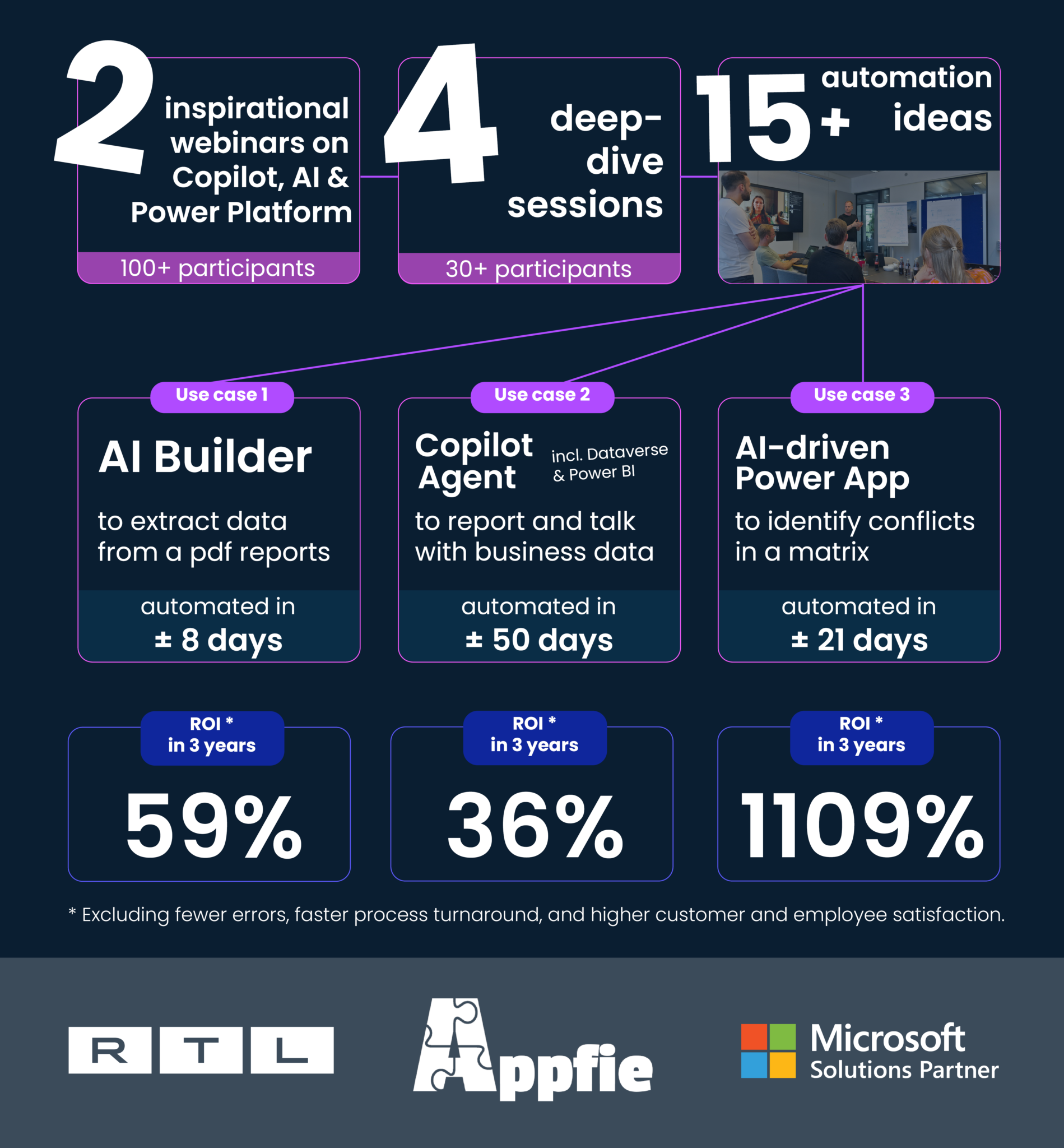 Curious to explore the possibilities of AI Copilot and Power Platform for yourself? Discover real use cases and calculate the value in terms of efficiency, cost savings, and happier customers. Get in touch with Appfie today.